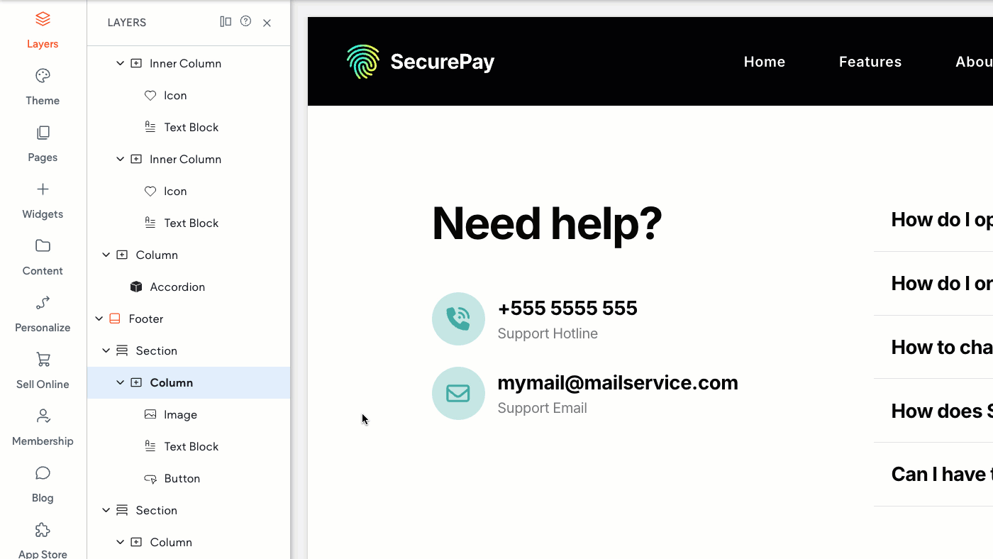 You can easily reorder elements within a Section by simply clicking and dragging a layer up or down the list to change its position. This is especially helpful for managing stacked elements, where the order of layers determines which elements appear on top.