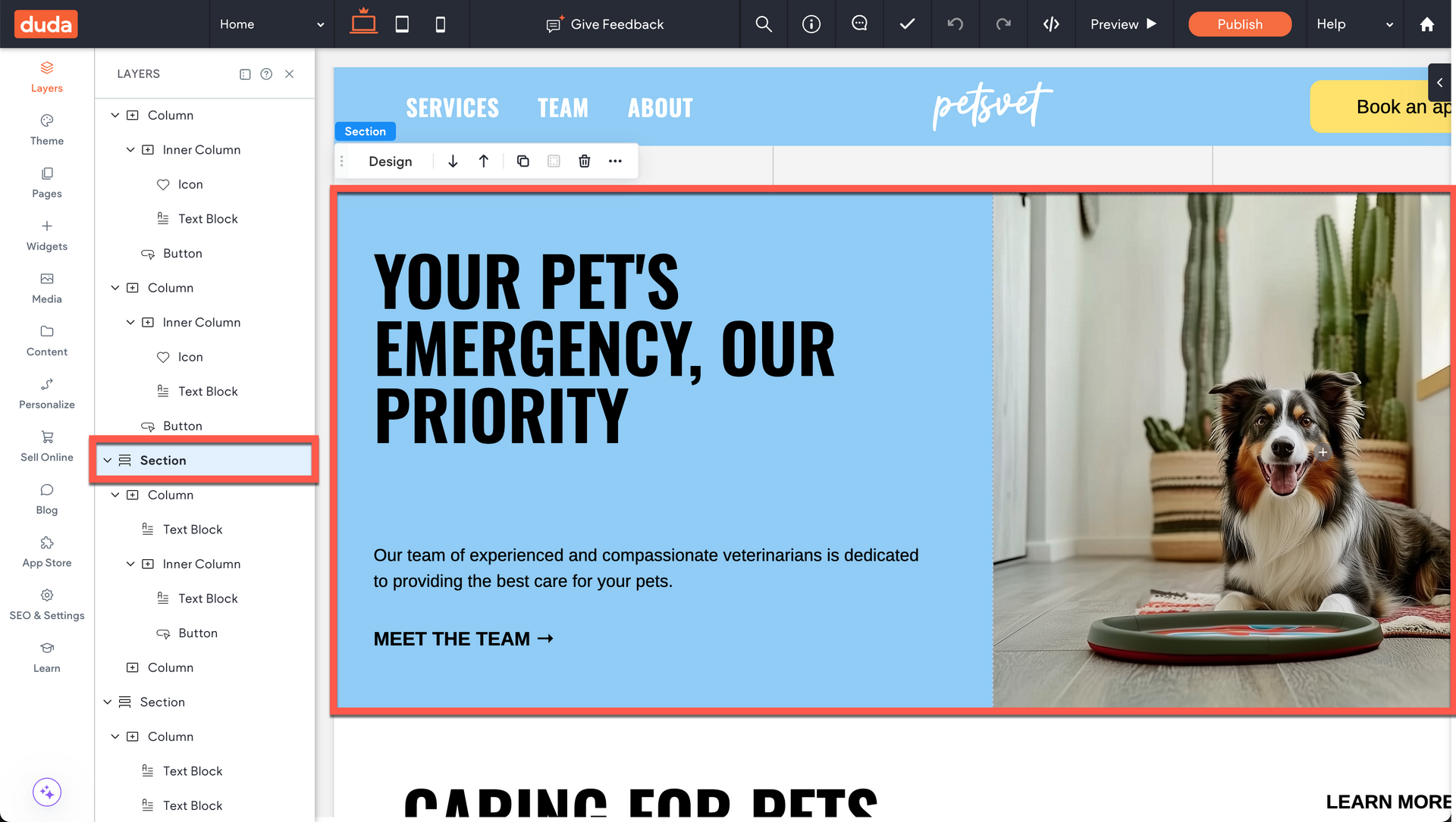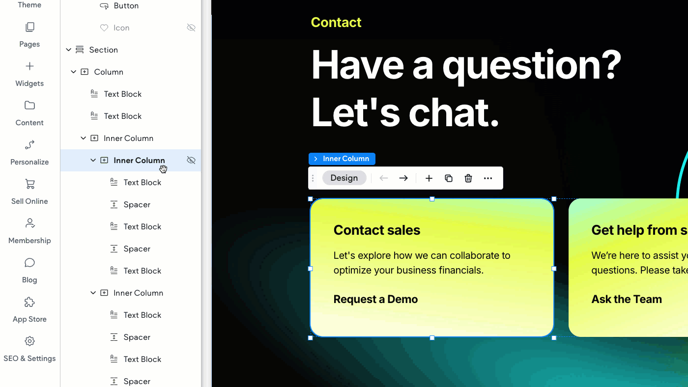 In Duda, a clear parent-child relationship governs your page structure, giving you precise control over your layouts.