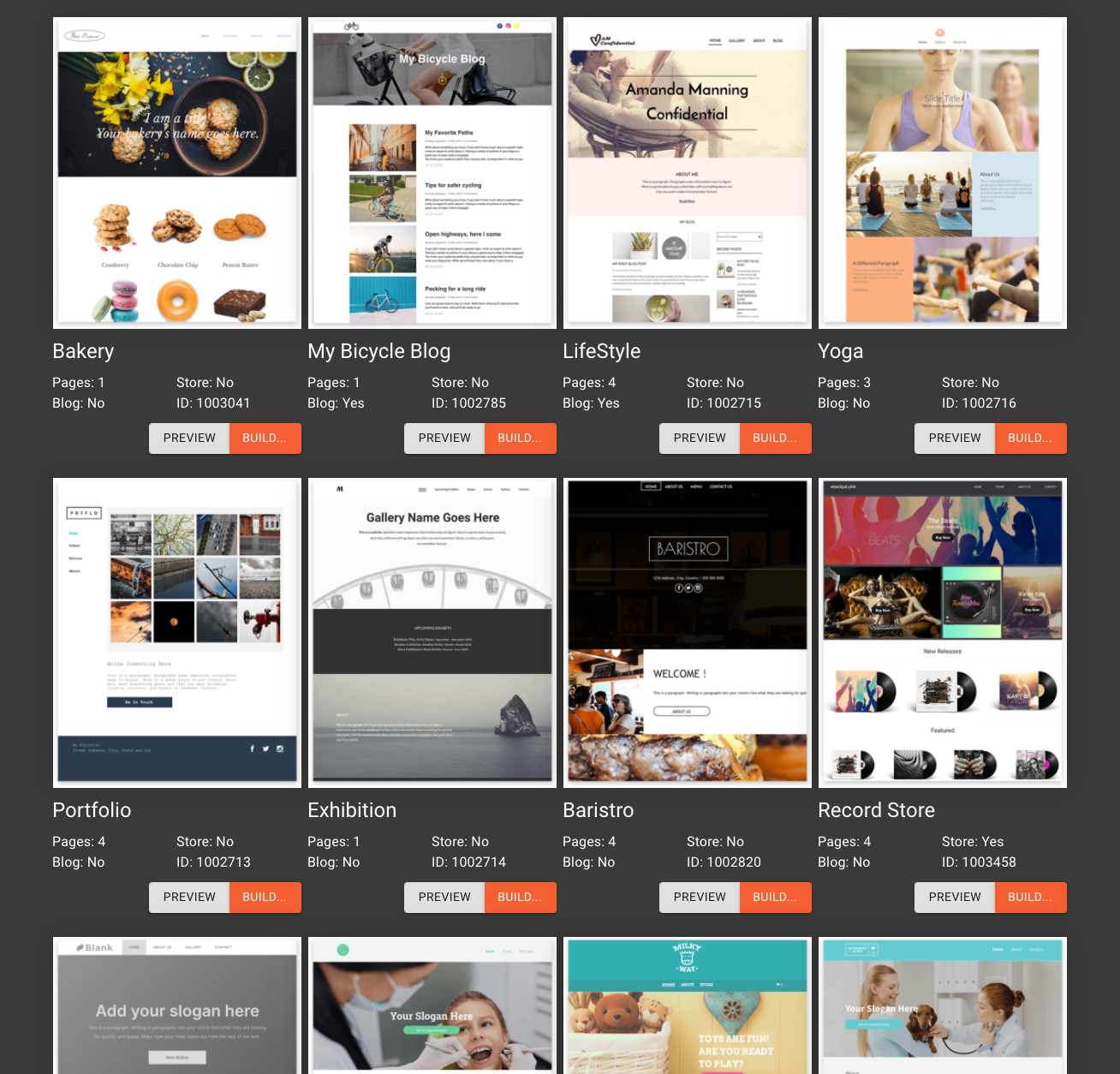 Duda has a special API call (List Templates) that will return the components you need to build a basic template chooser. This includes: a thumbnail image of your site template, a URL you can use to preview a template, and, most importantly, the unique template ID that is needed in the site creation API call.