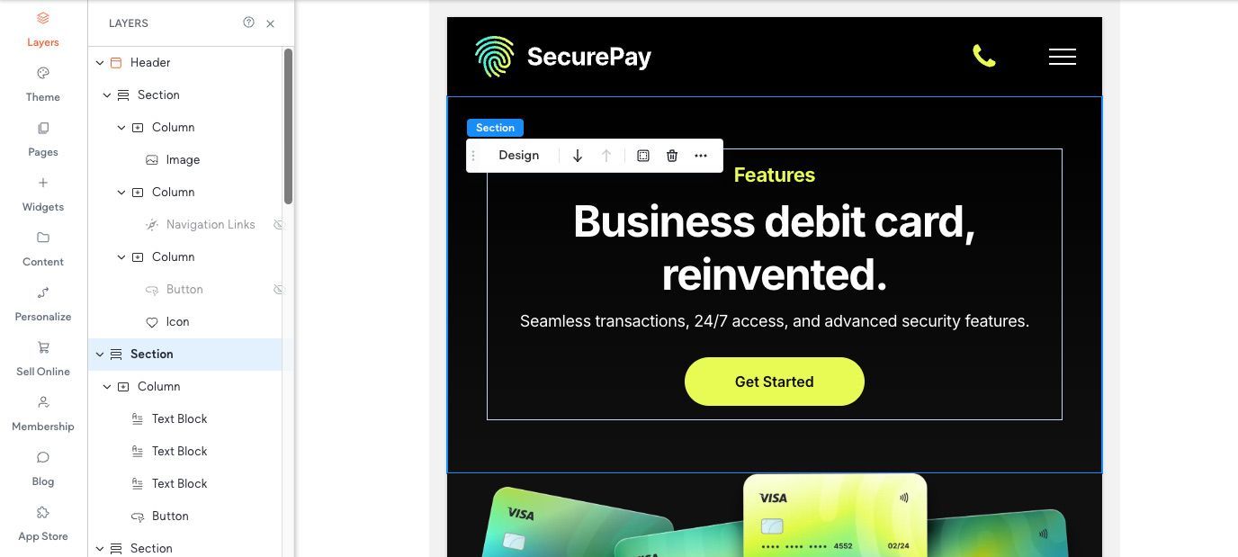 If you want to customize which sections or elements appear on your mobile and tablet layouts, you can manage the hiding/showing of elements from within the Layers panel.