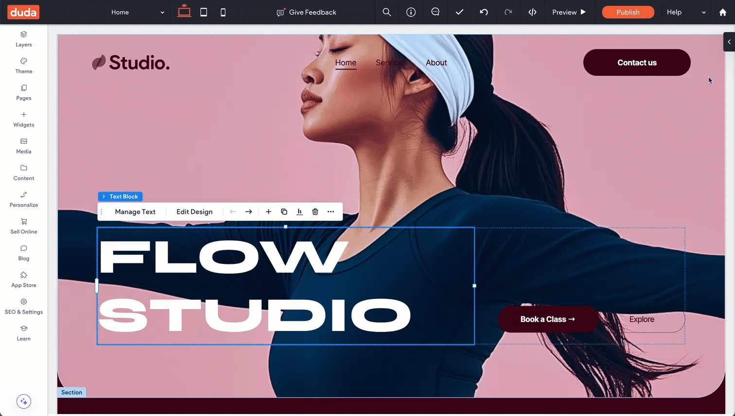 Each element type has its own set of adjustable properties, so the options in the panel will change depending on what you've selected. These properties may include alignment, layout, spacing, sizing, and more.