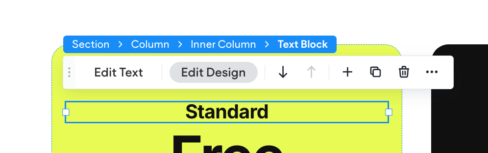 To open the Design Panel, click any element from the Canvas. From the floating bar, click Edit Design. The Design Panel will open on the right side of the editor.