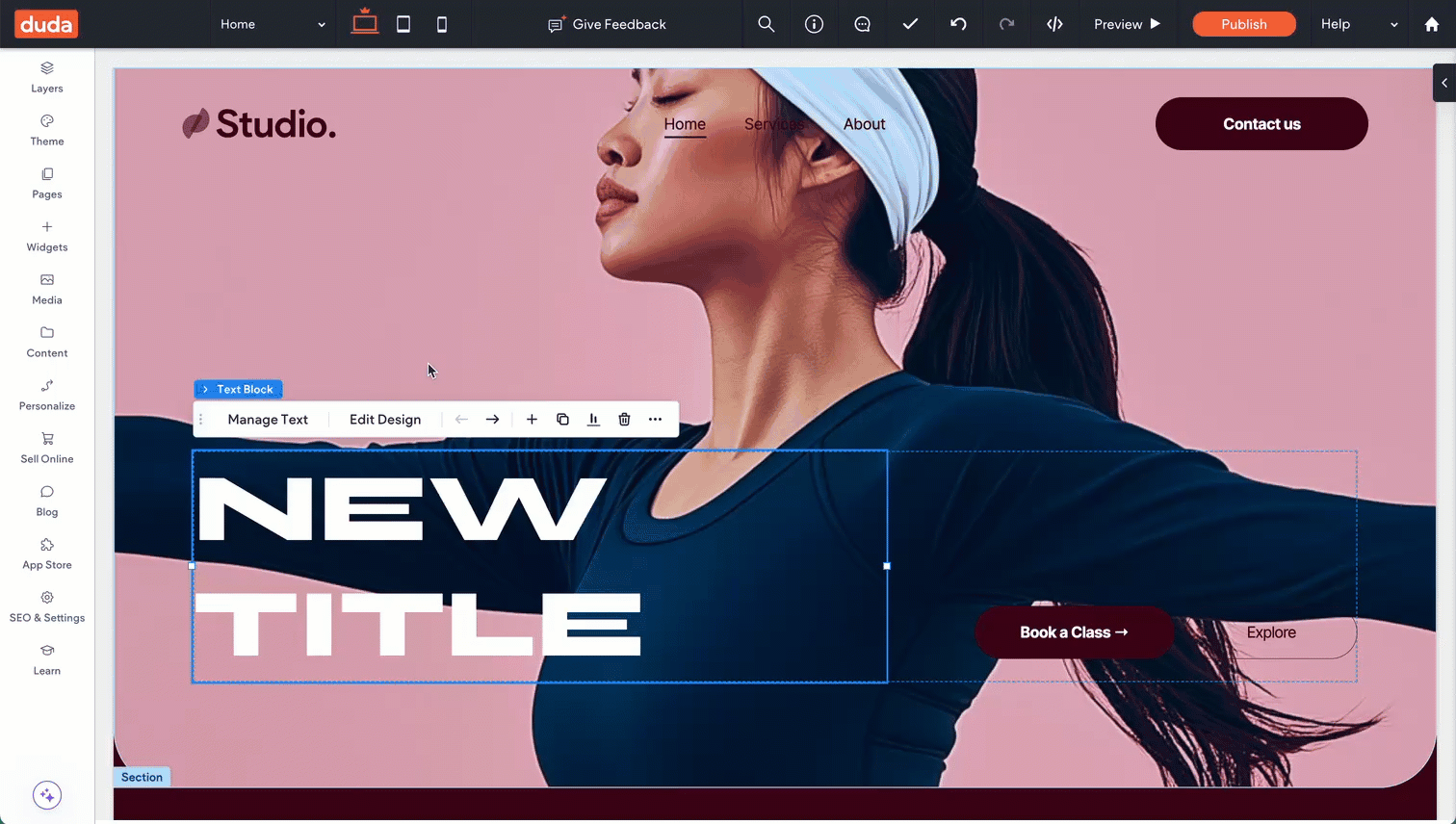 This is paragraph text. Click it or hit the Manage Text button to change the font, color, size, format, and more. To set up site-wide paragraph and title styles, go to Site Theme.