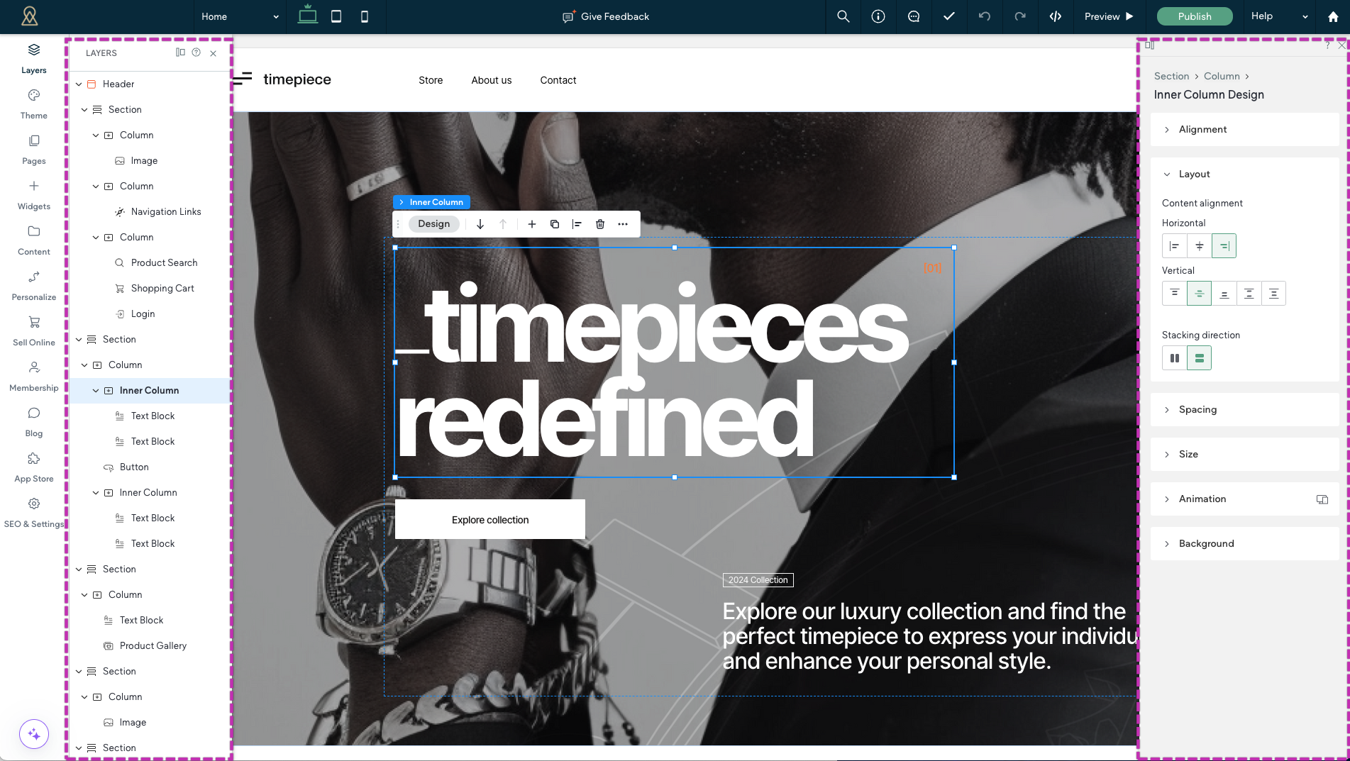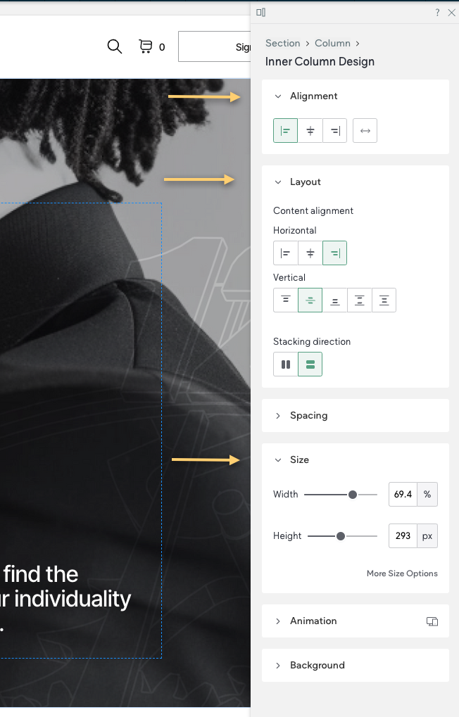 This panel includes the ability to edit the styles and animations like you could with the previous editor, but now, there are new characteristics like