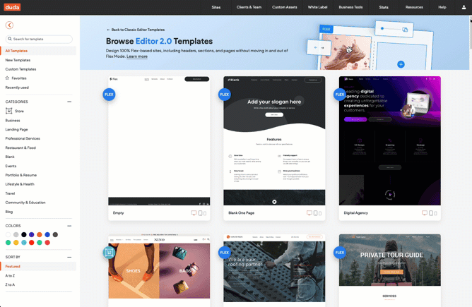When you go to create a new site, you'll now land on the Editor 2.0 template catalog.