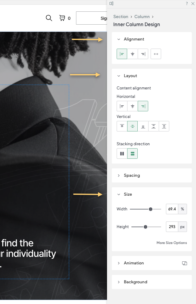 This panel includes the ability to edit the styles and animations like you could with the previous editor, but now, there are new characteristics like