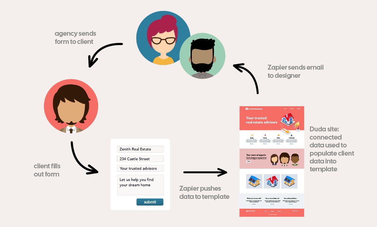 - Built the automation in Zapier, mapping form data to Duda’s content library to automate the entire site creation process.